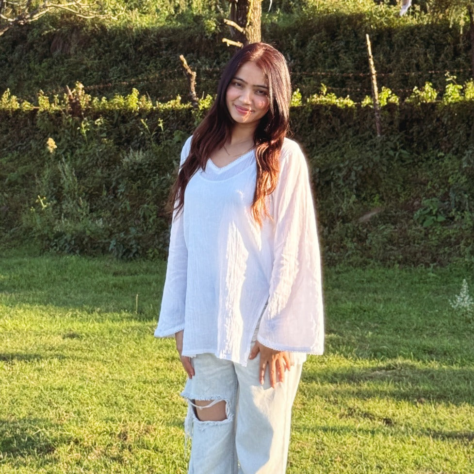 Shop now"Absolutely in love with the Hans Kurti! The fabric feels so soft and breathable, and the flowy sleeves make it look effortlessly elegant. It’s my go-to for both casual outings and travel days — comfy yet so chic!"— Avantika N.